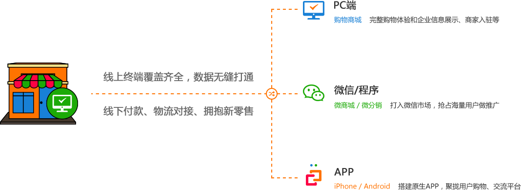 新零售時(shí)代,多渠道與生態(tài)化,才有未來 打通PC端、微信端、APP端數(shù)據(jù),多端同步,實(shí)現(xiàn)線上線下業(yè)務(wù)全覆蓋