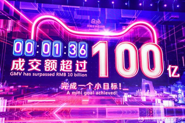 11月11日消息,零點剛過1分36秒,2019年天貓“雙11”的成交總額突破100億元。這個速度再次刷新天貓“雙11”成交總額破100億的紀錄。12分49秒,成交...