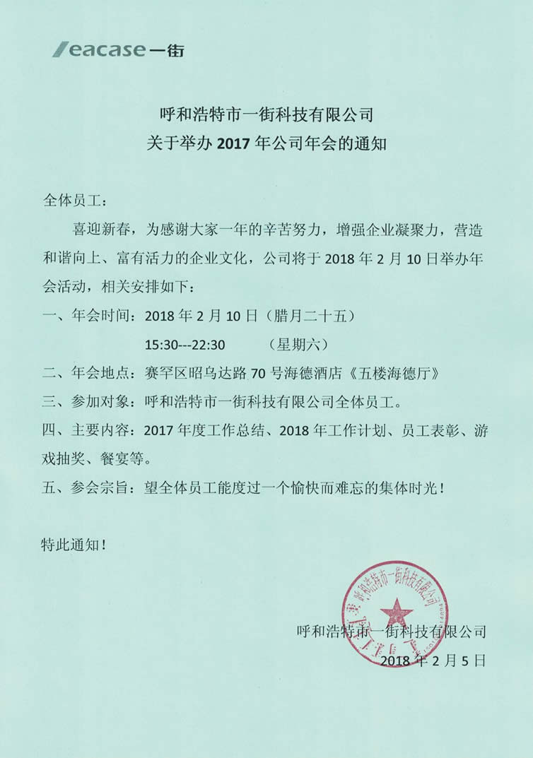 【通知】關(guān)于舉辦2017年年會(huì)的通知