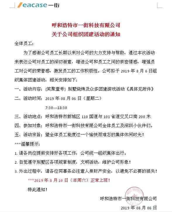 【通知】呼和浩特市數(shù)巢信息有限公司關(guān)于公司組織團(tuán)建活動(dòng)的通知