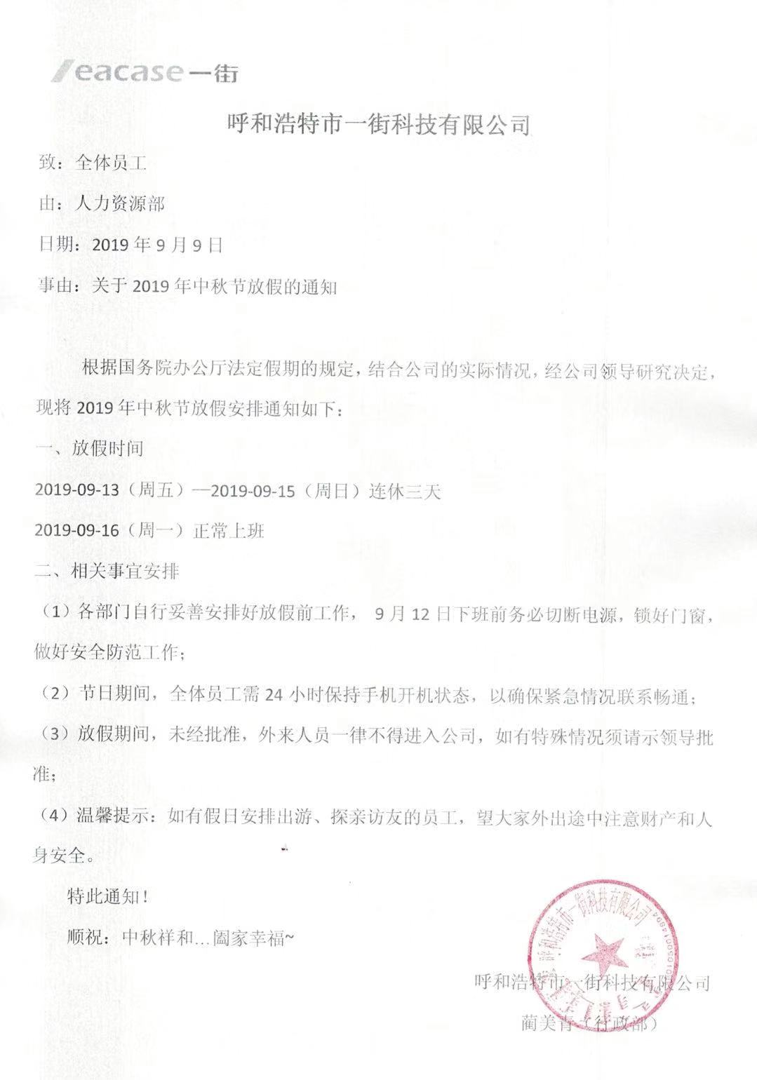 【通知】數(shù)巢信息關(guān)于2019年“中秋節(jié)”放假的安排
