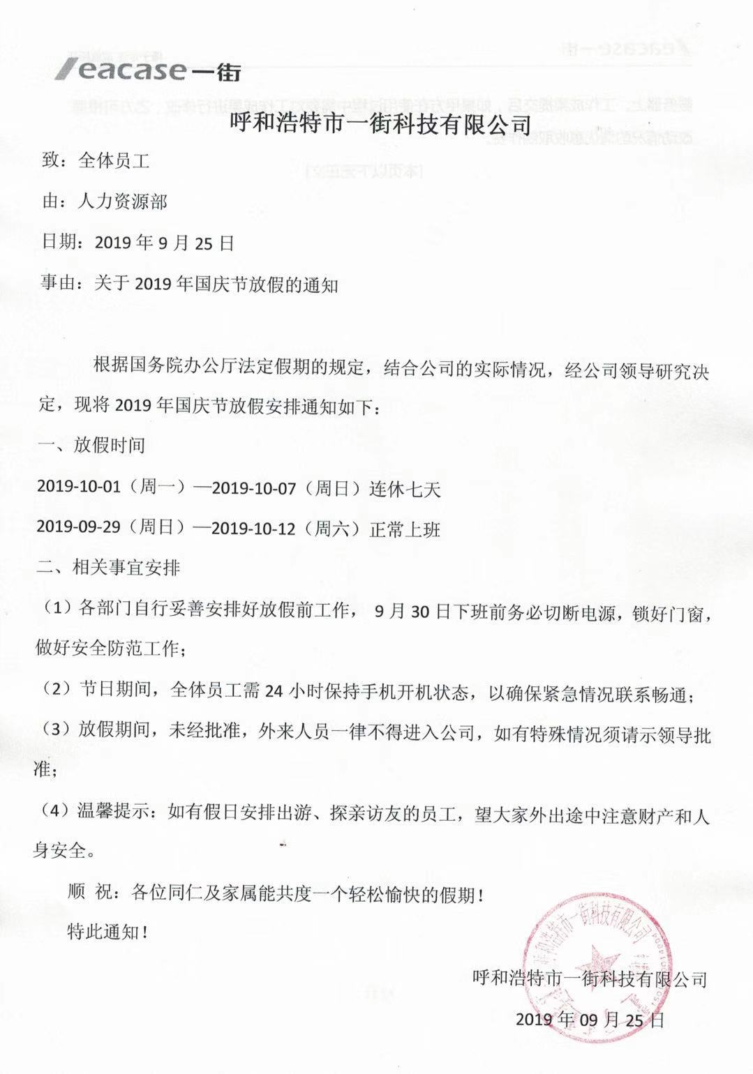 【通知】數(shù)巢信息關(guān)于2019年“國慶節(jié)”放假的安排