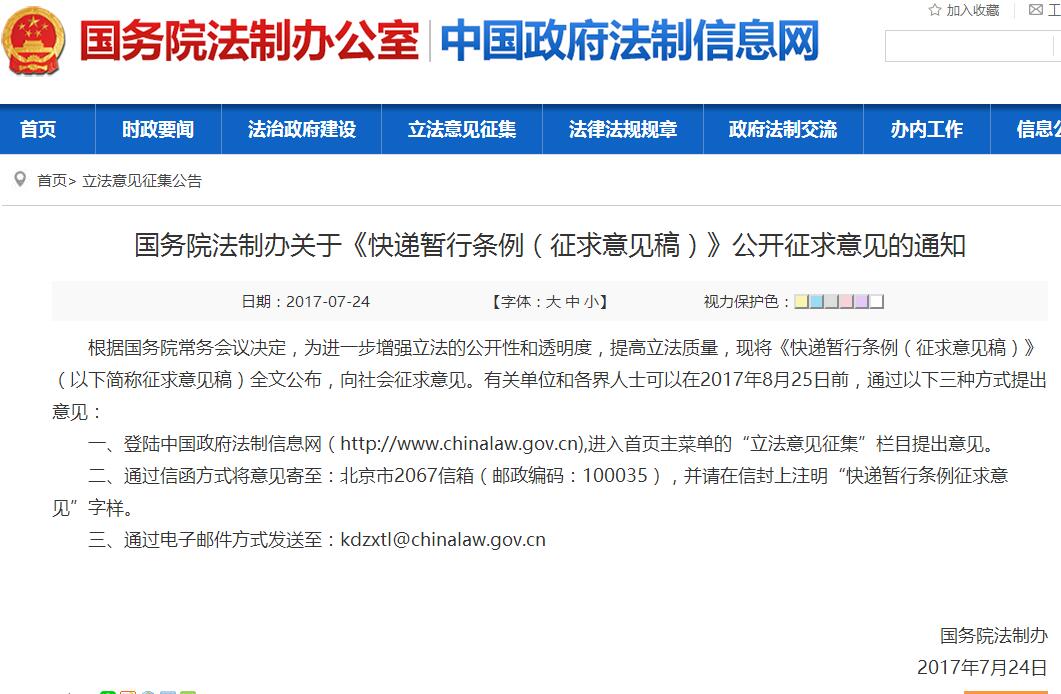 《快遞暫行條例(征求意見稿)》第二十一條指出: