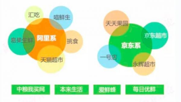 不過,也并非所有的生鮮電商企業(yè)都處境堪憂。根據(jù)品途商業(yè)評(píng)論的研究數(shù)據(jù)顯示,生鮮電商領(lǐng)域目前已經(jīng)形成“兩超多強(qiáng)”的競爭格局。“兩超”分別是阿里系和京東系,“多強(qiáng)”則是中糧我買網(wǎng)、本來生活、愛鮮蜂、每日優(yōu)鮮等。