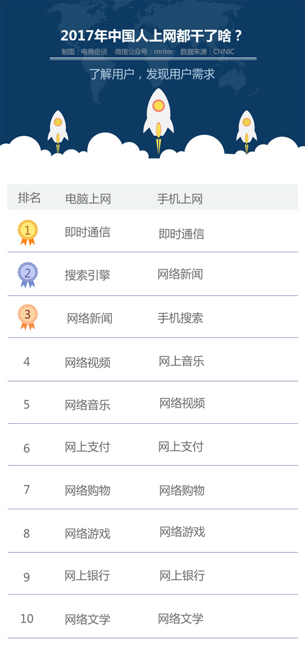 創(chuàng)業(yè)者和電商人必看:2017年中國人上網(wǎng)都干了啥?